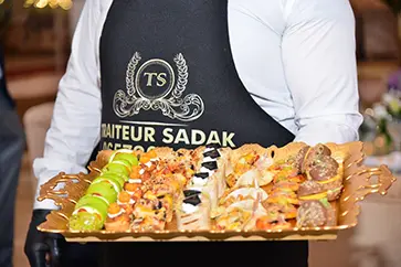 Traiteur Sadak met son savoir-faire au service de vos événements à Casablanca. Mariages, fiançailles, pauses café et bien plus, nous vous garantissons une cuisine raffinée et un service impeccable. Faites de chaque occasion un moment d’exception avec notre expertise traiteur.